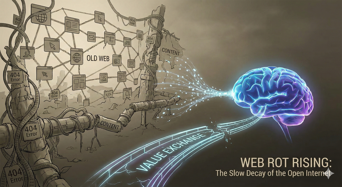 從網站流量下滑、內容腐化到商業模式失靈,這些現象共同指向一個問題:AI 正在加速開放網路既有結構的老化。若無法建立可持續的內容經濟模式,未來無論對 Publisher、AI 公司,甚至一般使用者而言,都將面臨資訊品質下降的長期風險。